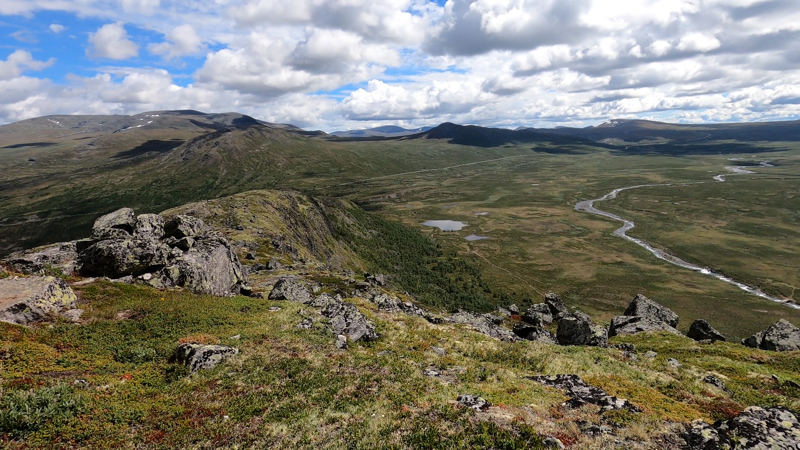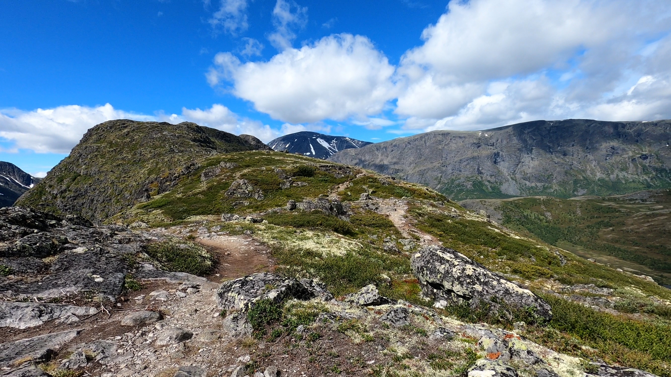 Kurze Verschnaufpause und weiter ging es langsam aber stetig bergauf. Da der Bergrücken Knutshoe aus mehreren Hügeln bestand, überwand ich nun einen nach dem anderen, die Backen immer weiter aufblasend, da es stetig bergauf ging.