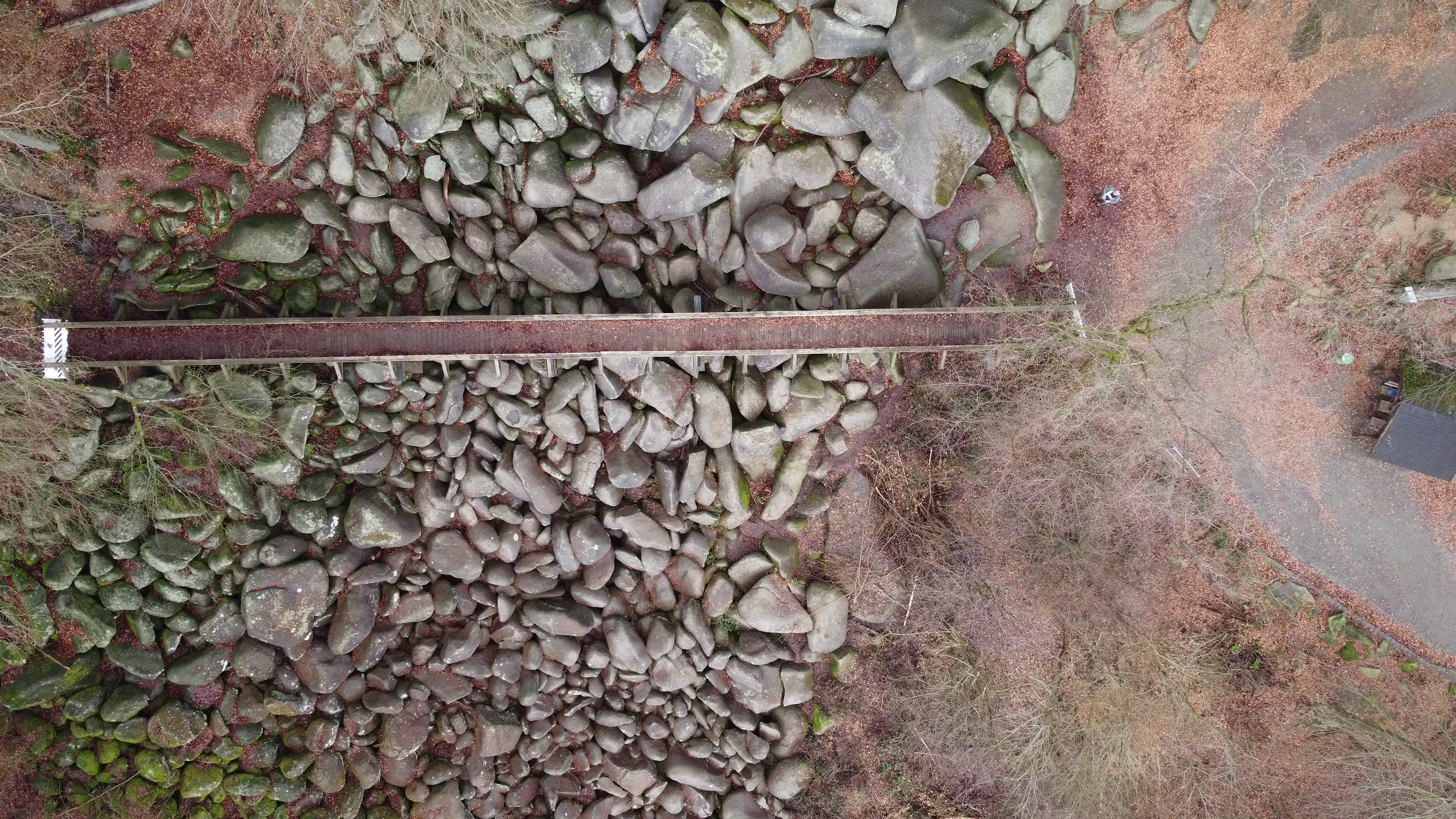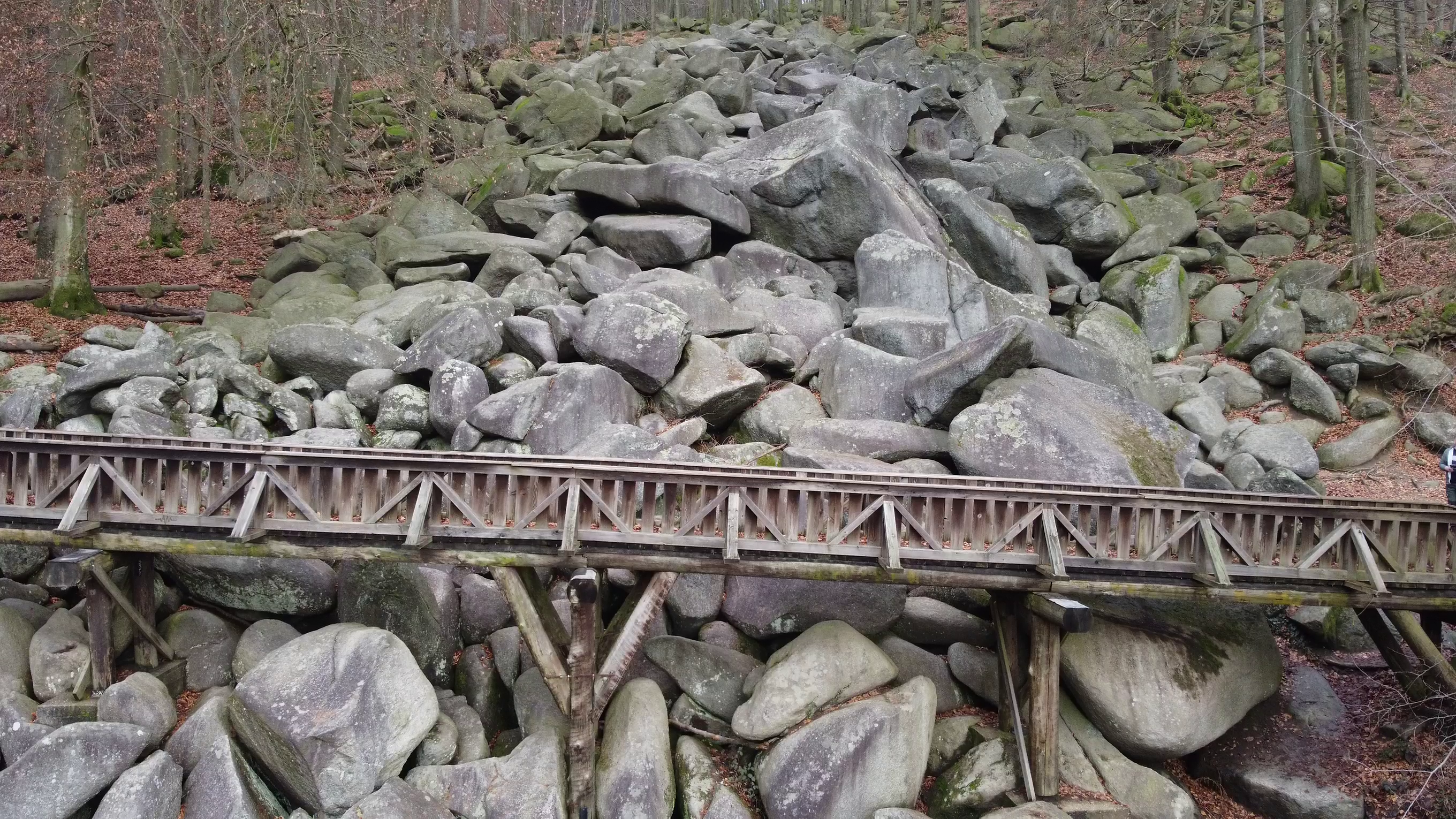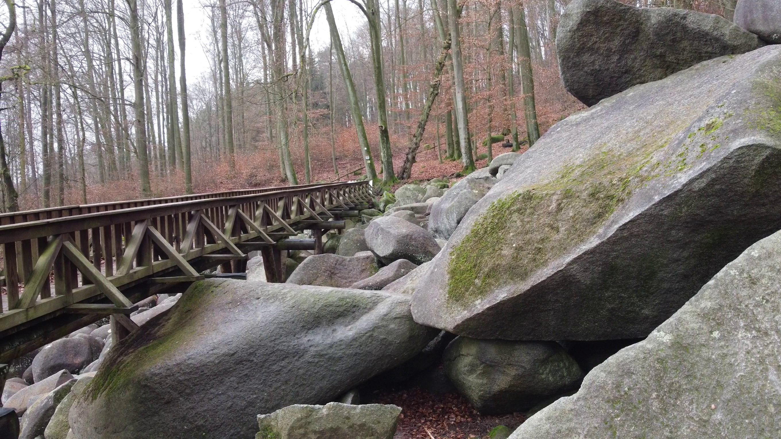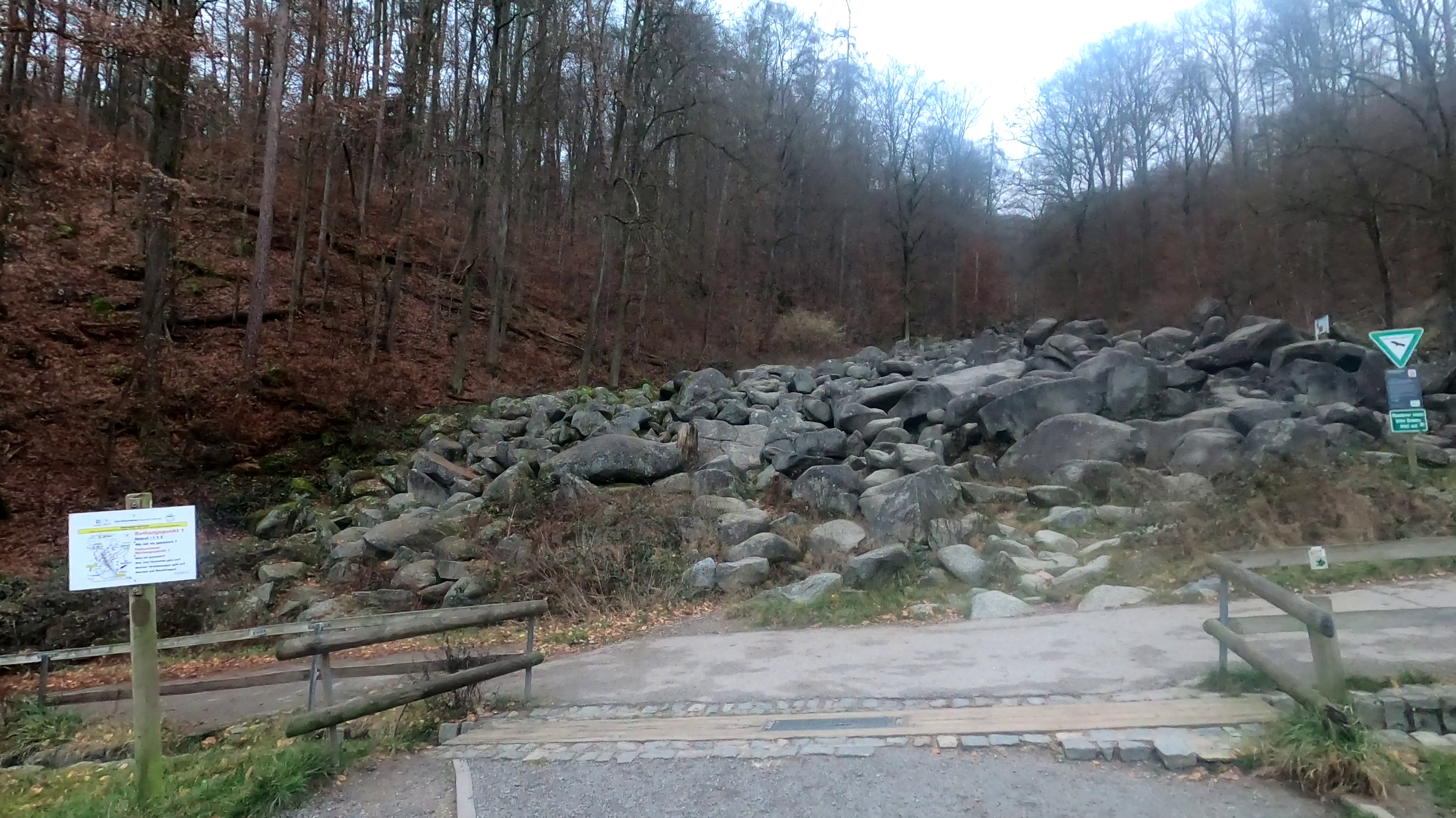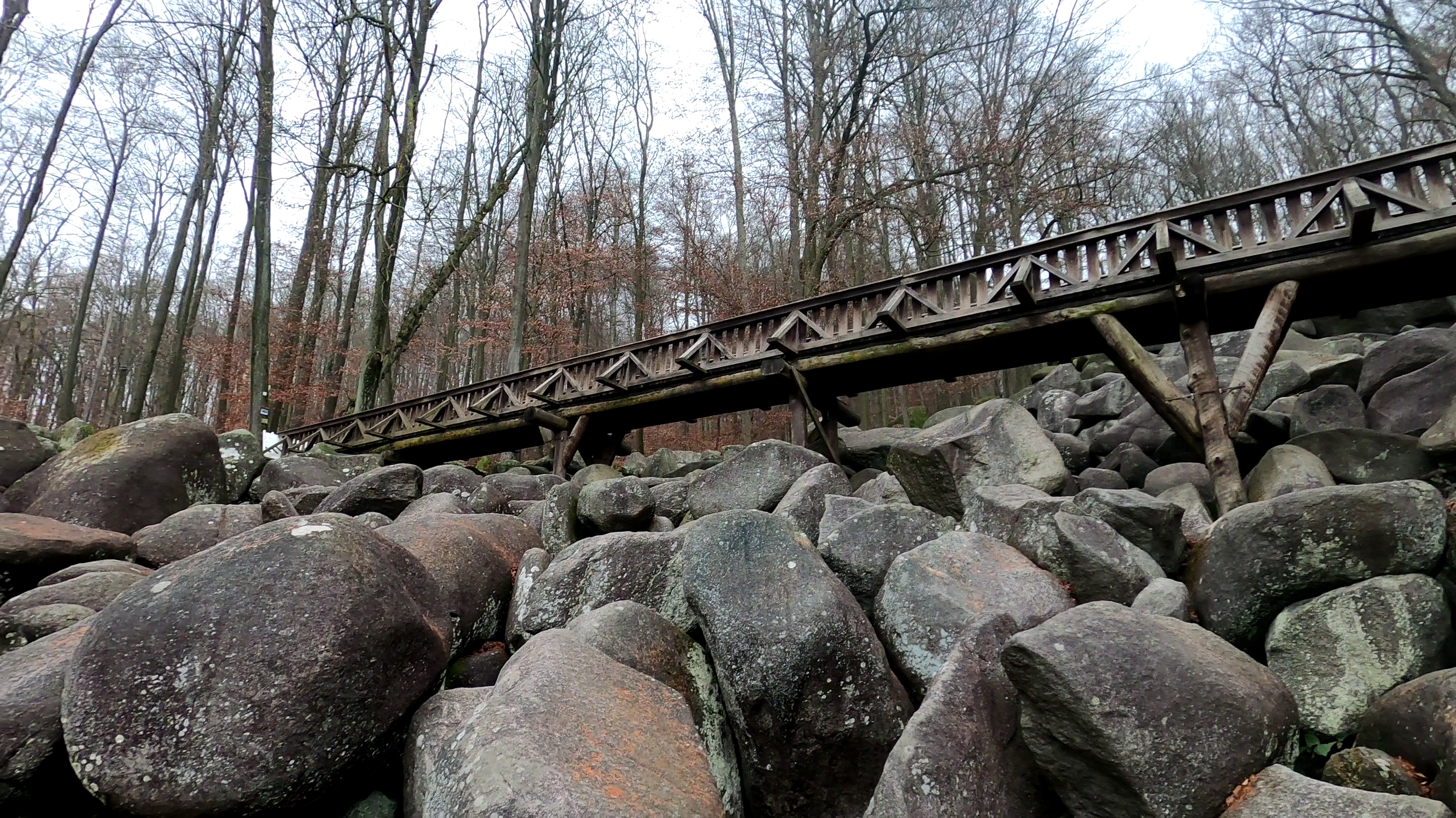 Langsam hatte ich die Brücke erreicht, welche etwa auf halber Höhe die beiden Seiten des Felsenmeeres verbindet. Leider war sie gesperrt wegen Renovierungsarbeiten.