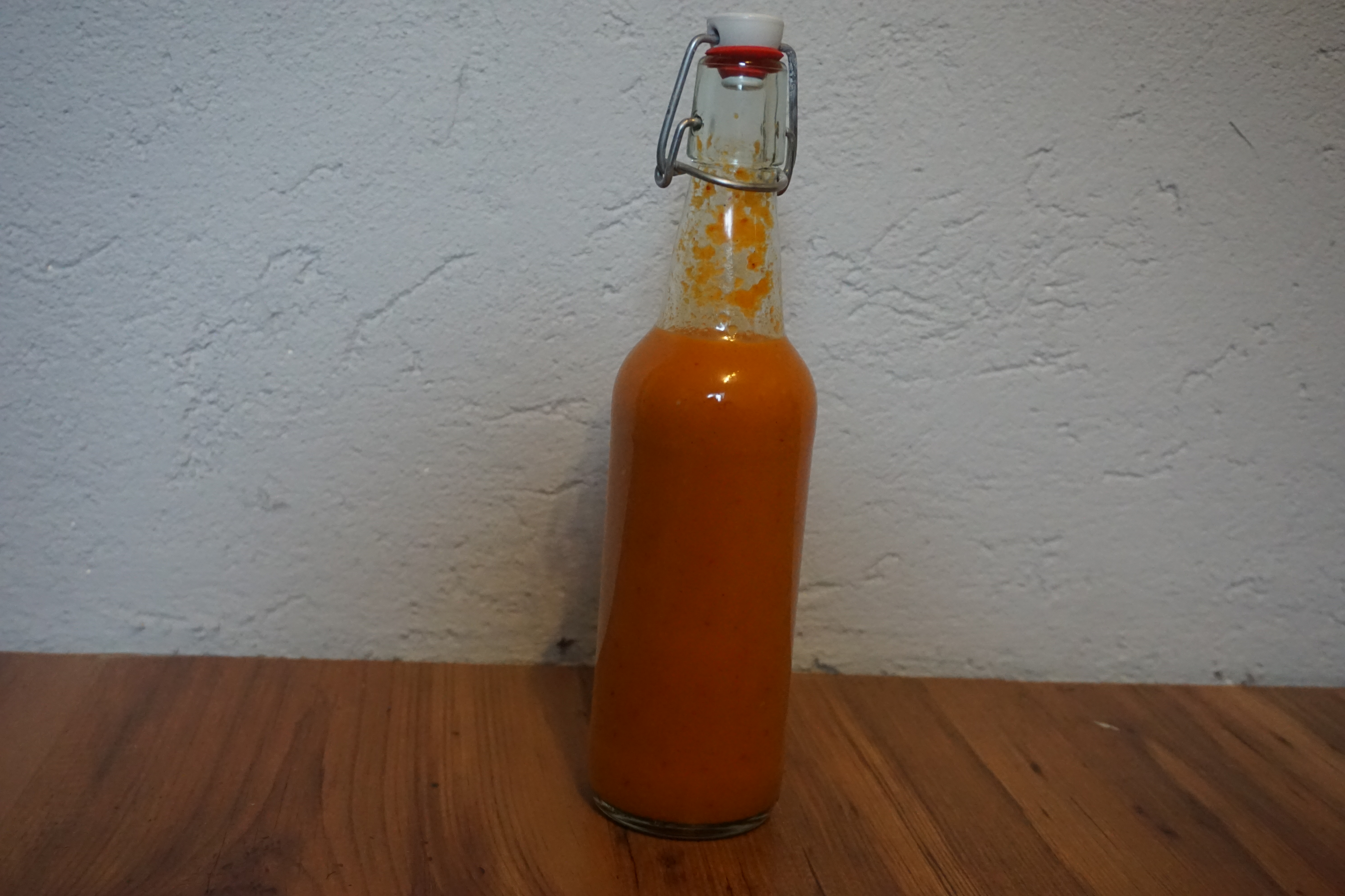 Solltest du planen die Sauce zum dippen zu verwenden, empfehle ich dir etwas weniger Habaneros denn sie hat einen ordentlichen Bumms in der Schärfe!