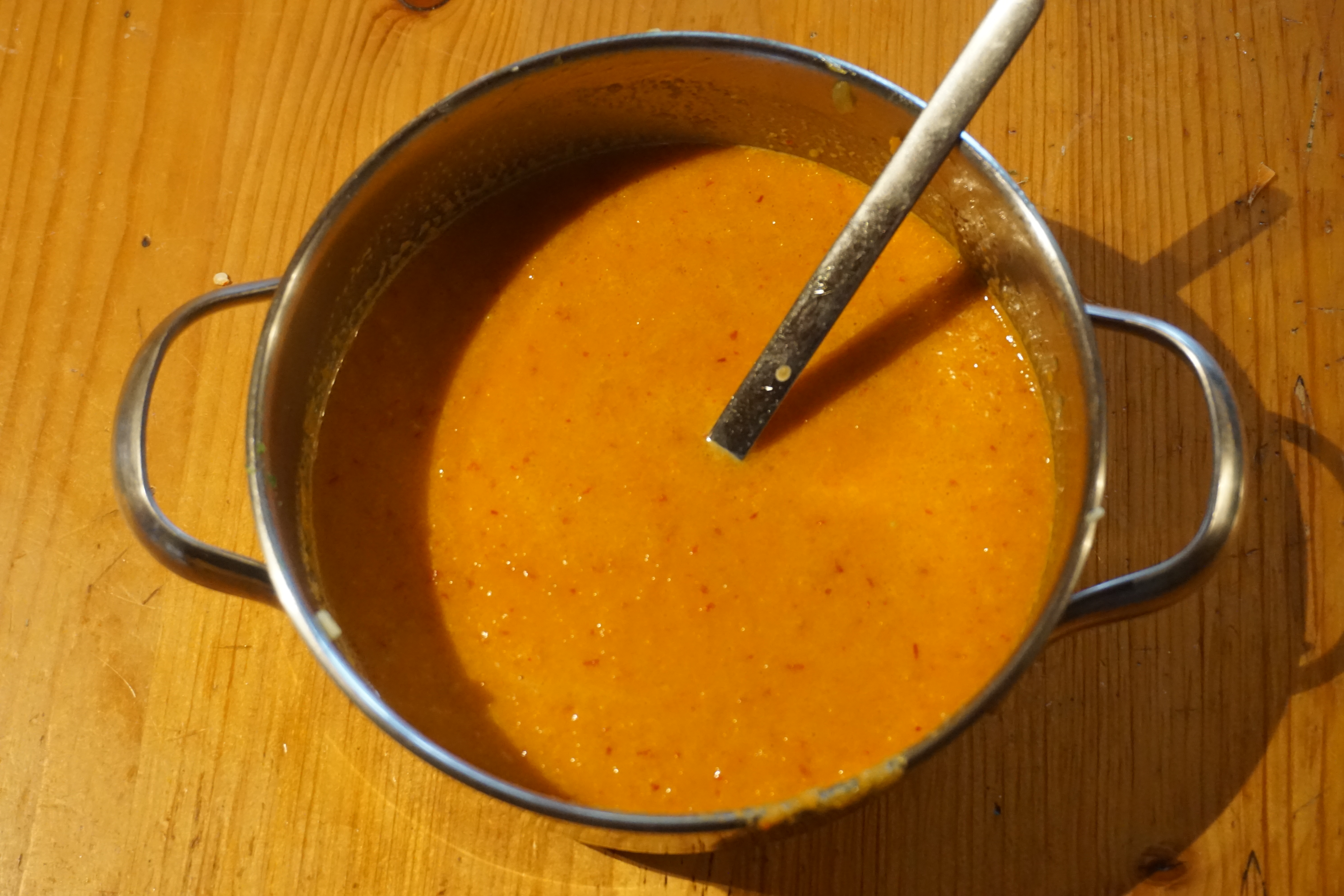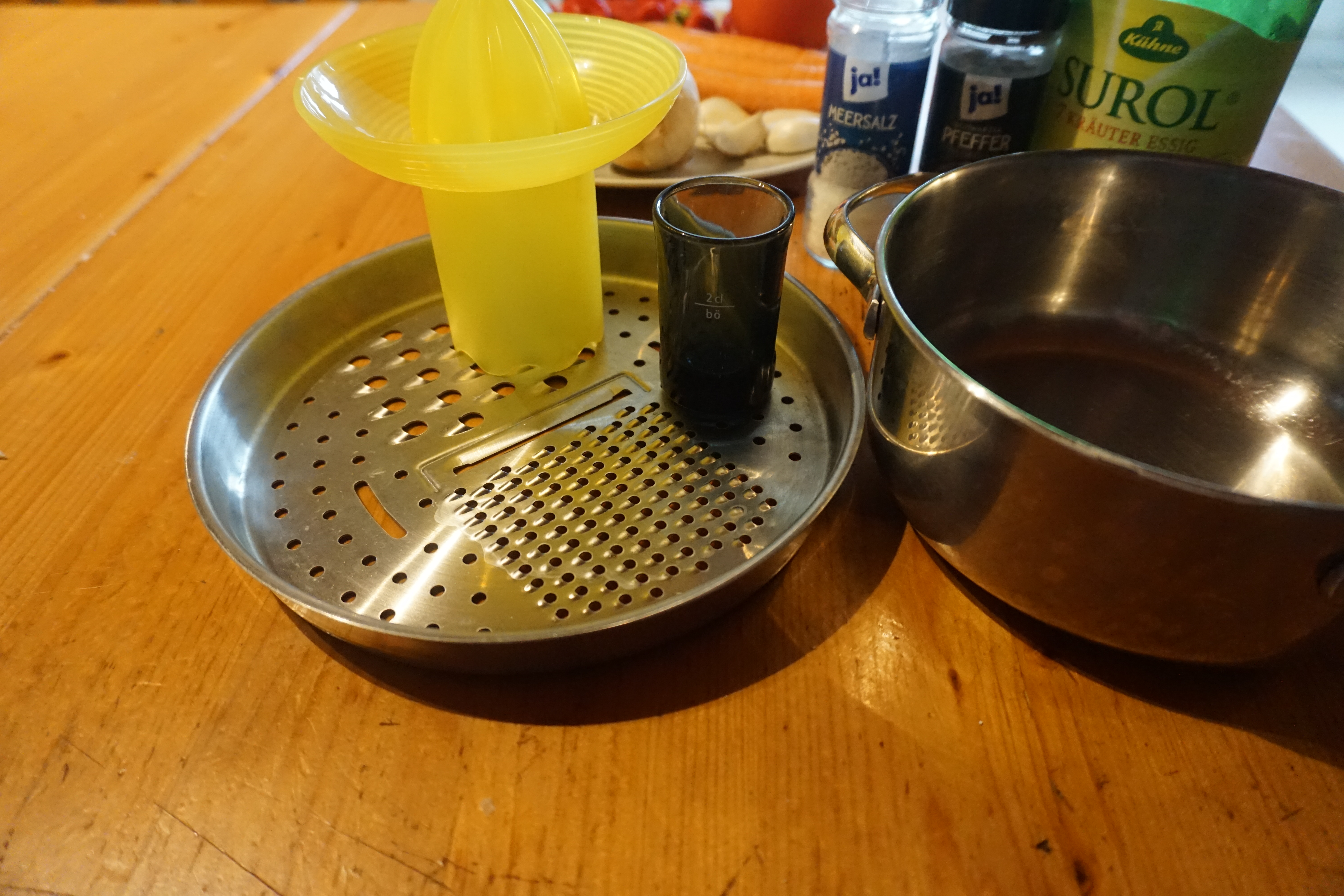 Man kann beispielsweise mehr Tomate, mehr Karotte oder mehr oder weniger Knoblauch verwenden. Einfach bisschen nach dem eigenen Geschmack richten. Ich verwende hier aber jetzt die angegebenen Mengenangaben.
