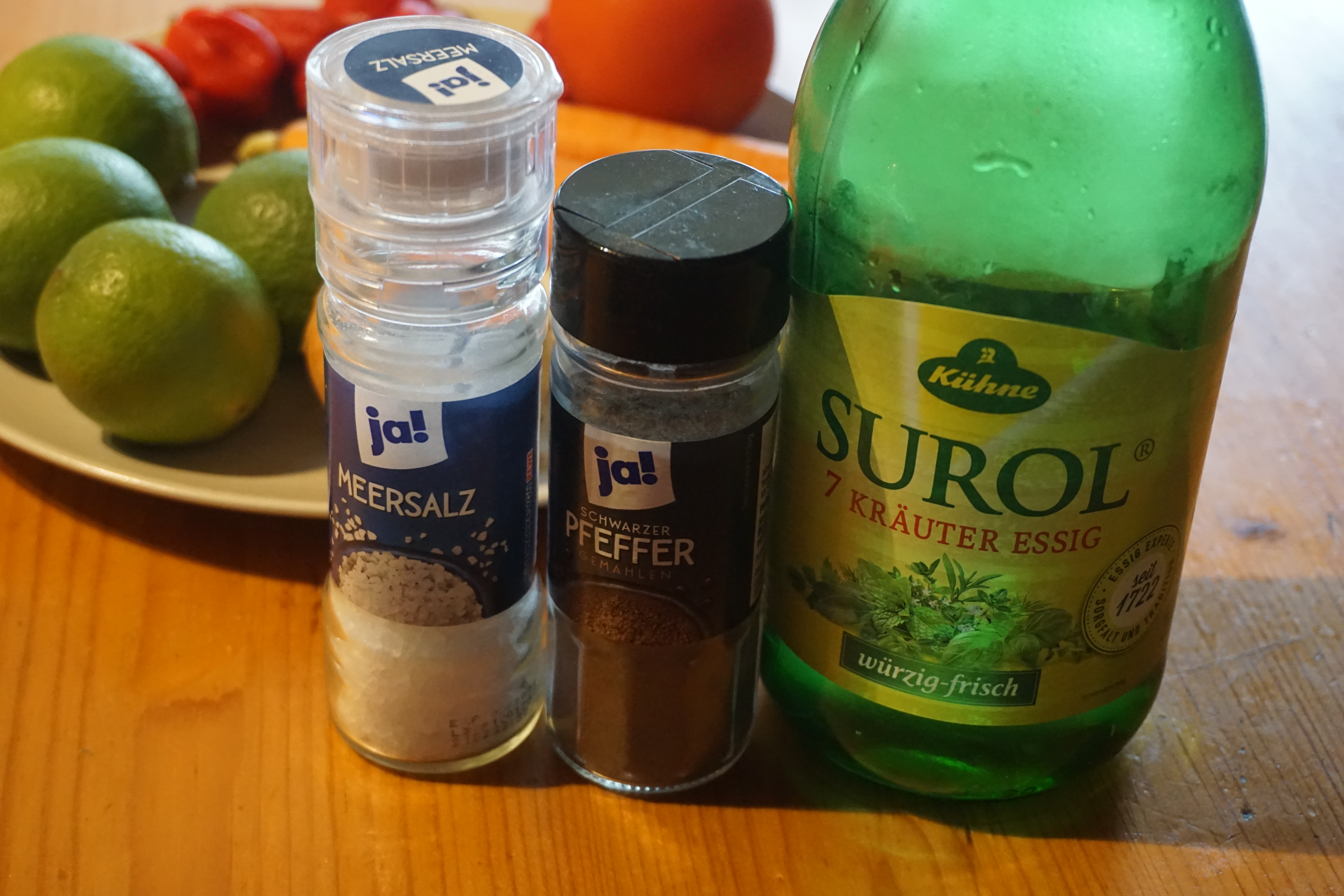 später unseren Limettensaft und die geriebene Limettenschale gewinnen, bisschen Wasser und Pfeffer und Salz zum nachwürzen. Die Mengenangaben kann man nattürlich auch je nach Geschmack variieren.