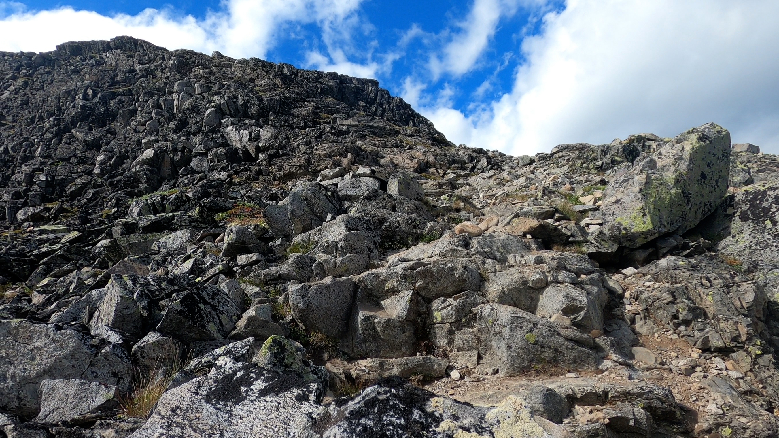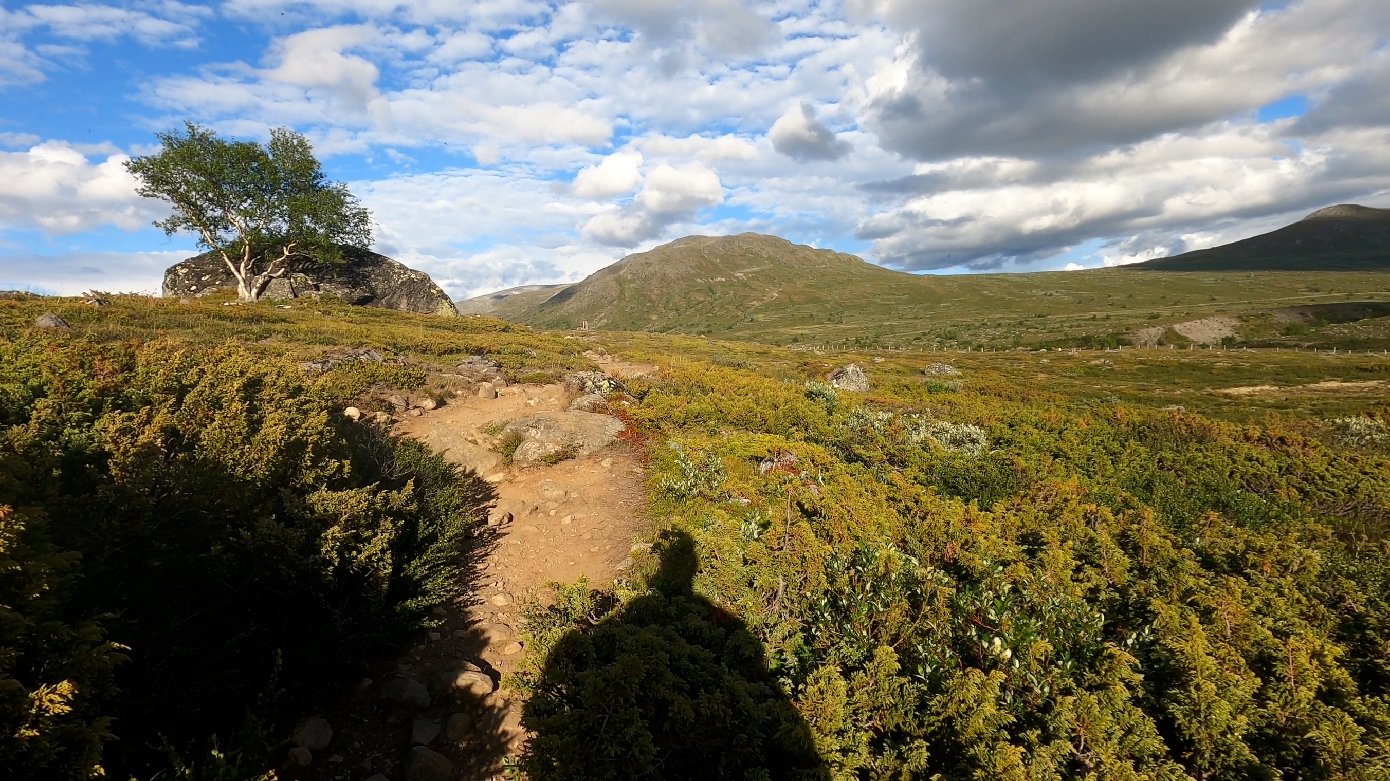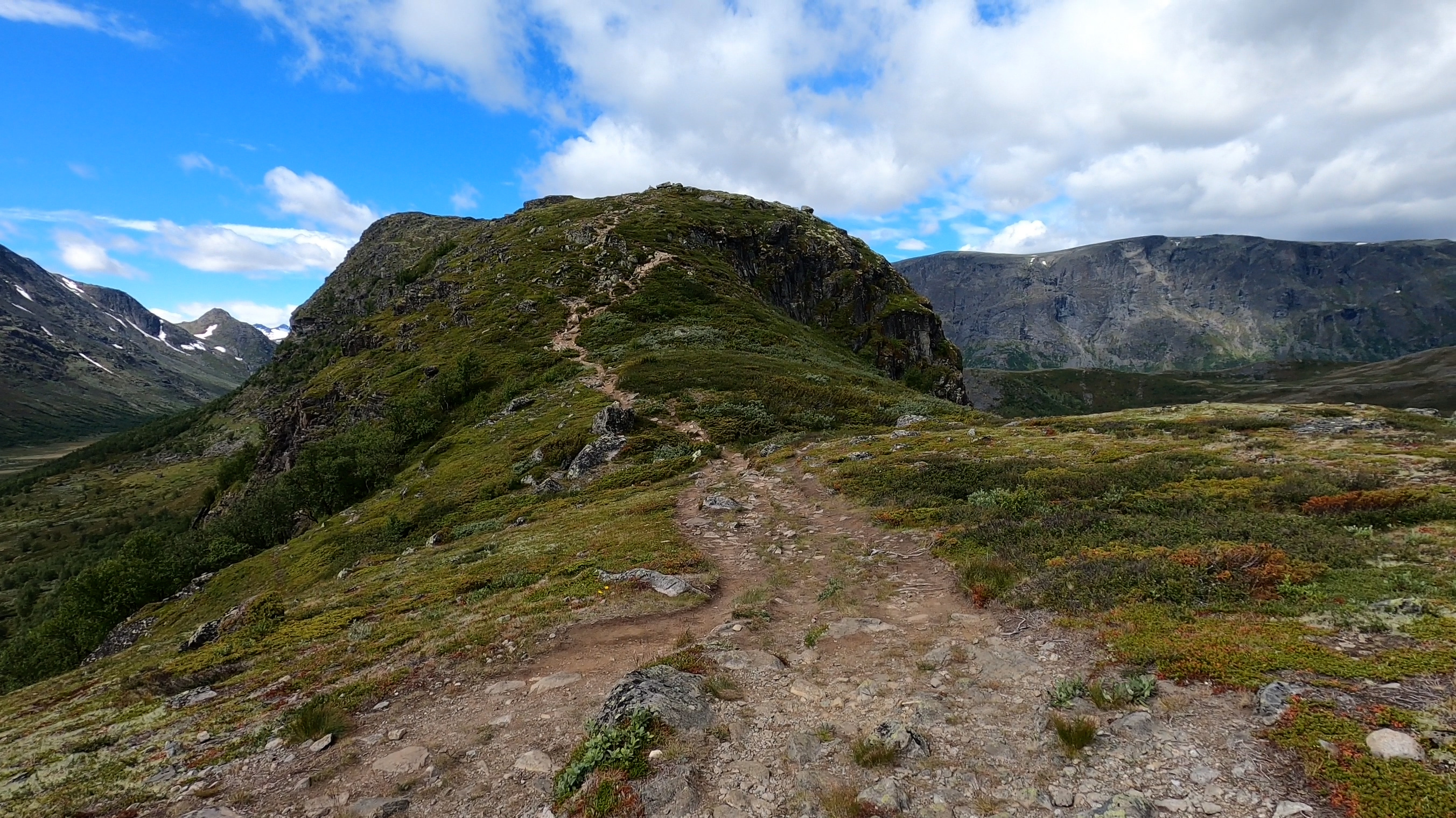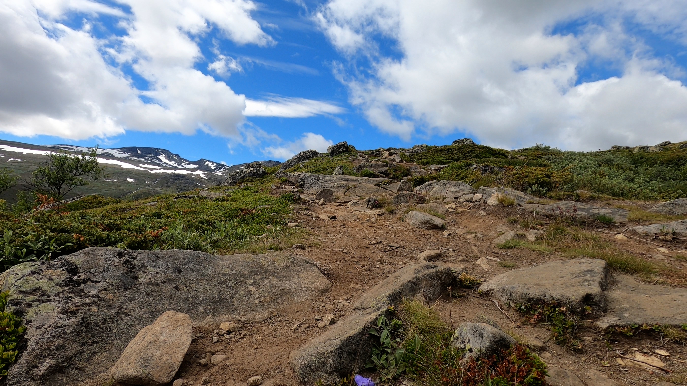 Kurze Verschnaufpause und weiter ging es langsam aber stetig bergauf. Da der Bergrücken Knutshoe aus mehreren Hügeln bestand, überwand ich nun einen nach dem anderen, die Backen immer weiter aufblasend, da es stetig bergauf ging.