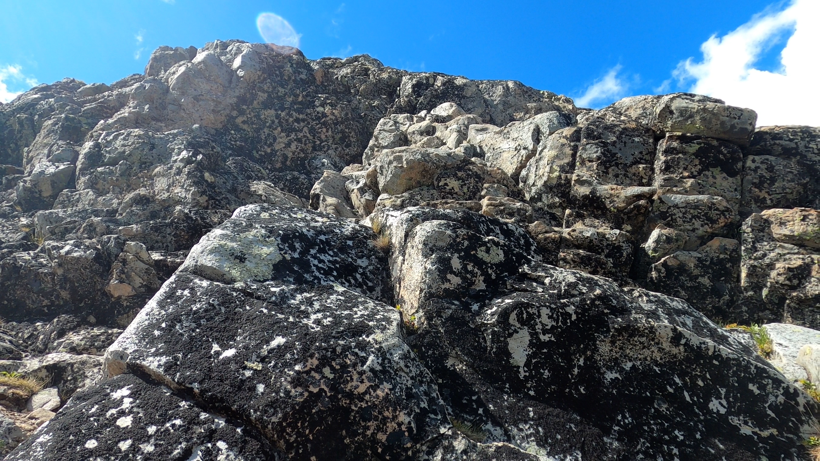 Dann stand ich vor der zweiten Kletterpassage, auf die auf der Tafel hingewiesen wurde. Eine fast senkrechte Wand ohne Weg, ca 15m bis 20m lang. Hier musste man sich mit Händen und Füßen nach oben hangeln.